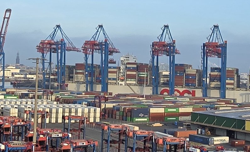 Containerschiff im Hafen
